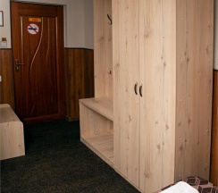 1 полутороспальная кровать, 1 двуспальная кровать стол, тумба, телевизор, душ, санузел, телефон