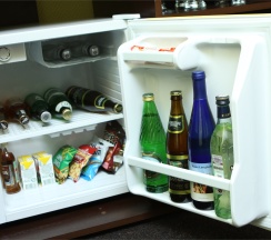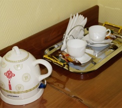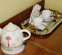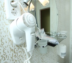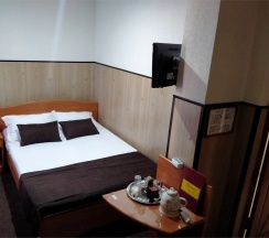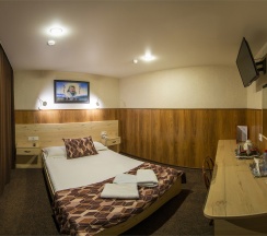 Однокомнатный просторный и комфортабельный номер, площадью 20 кв. м с видом на город. Завтрак включён в стоимость проживания. В номере имеется: 2 двуспальные кровати, 2 тумбы, мини-прихожая, мини-бар, телевизор, журнальный стол, шкаф, фен, душ, санузел, телефон, чайник, чайный набор, холодильник, кондиционер.