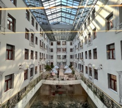 Были с супругой в этом замечательном отеле с 30 на 31 августа. Отмечали в Питере годовщину нашей свадьбы! Отель находится в самом центре города, буквально в 50 метрах от Исаакиевского собора. Это первый огромный плюс отеля! На входе нас встретил очень приветливый администратор. Пока оформляли документы, нам было предложено шампанское! Такая встреча сразу тебя настраивает на положительные эмоции. Номер небольшой, но крайне комфортный! Белоснежная простынь, одеяло и подушки! Администрация отеля в честь нашего праздника оставила нам в номере подарок: бутылку шампанского, клубнику в шоколаде и сладости. Из номера открывается вид на Атриум отеля. В номере есть все необходимое и даже больше. Наличие кофемашины это просто супер!