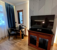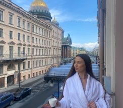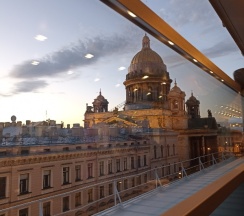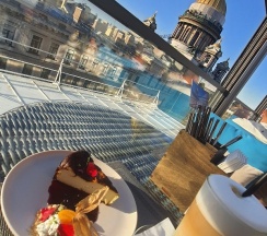 Отдыхали с супругом в этом отеле 30-31 августа. Именно ОТДЫХАЛИ, потому что обстановка в отеле, в номере располагает к тому, чтобы насладиться пребыванием в отеле. Персонал очень приветливый, отзывчивый. Всё подскажут, помогут. Обстановка именно не помпезная, а сдержанная, красивая, дорогая. В номерах очень чисто! Есть всё для комфортного пребывания: туалетные принадлежности, бытовые приборы (утюг, фен, холодильник). В номере есть чайник, чай, кофе, также стоит кофемашина капсульная. Полотенец много. Кровать - это отдельное удовольствие! Такая мягкая, удобная! Возможно посещение сауны и бассейна в отеле. Мы воспользовались этой услугой. Остались очень довольны! Три часа пролетели незаметно. Время посещения забронировали заранее. В сауне и бассейне были только мы вдвоем. Ещё порадовал завтрак. Выбор блюд большой, ну просто всё, что душа пожелает. И для тех, кто придерживается правильного питания, и для тех, кто любит утром плотно позавтракать, найдутся подходящие блюда. Ещё отдельно скажу про ресторан с видом на Исакиевский собор. Вкусно и красиво! Вид просто великолепный! Особенно в вечернее время. Второй раз мы останавливаемся в этом отеле. И думаю, что не последний)