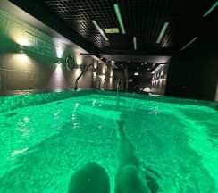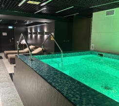Для тех, кто не знает, в отеле есть небольшая зона спа с бассейном, сауной и тренажерным залом. Но туда надо записываться у администратора на время. Находится спа на цокольном этаже, дверь пропускает только гостей, которые записаны. То есть мы были одни. Очень удобно и никто не мешает!