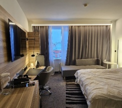 Останавливались с 8 по 11 июля 2025г. Номер 1402- совсем не рекомендую, тк общая внутренняя дверь с другим номером 1401, конечно дверь была заперта, но проснувшись однажды ночью, услышав голоса, было ощущение, что разговаривают над моим ухом... Уборка номера на отлично. Завтраки вкусные, выбор есть, но чуть не дотягивает до 4). На ресепшене девушка чудо, всегда доброжелательная, улыбчивая. После выселения оставили вещи в камере хранения... Очень хорошее расположение отеля, тишина. Хорошее постельное бельё, матрас очень удобный.... А теперь немного о грустном- 10 июля был юбилей- 50 лет... Поздравление не было к сожалению... А жаль, в первый раз такое