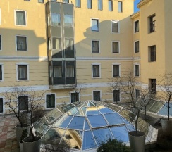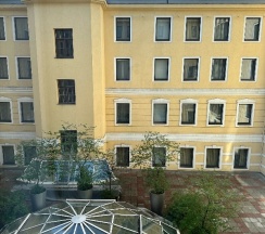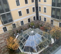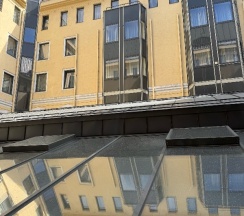 Расположение у гостиницы очень удобное. Номер у меня был с видом на внутренний дворик. Меня вполне устроило, так как мне тишина нужна, ну и вид на купол атриума и растения приятный, небо видно. Окно можно приоткрыть и проветрить номер.