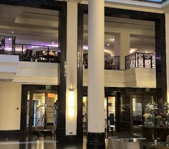 Большущий отель с огромным и красивым холлом. Все сверкает))) хочется там сидеть и никуда не идти))) С улицы очень красиво смотрится.