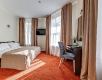 Очень маленький номер в двухместном комфорт, заявленных 17 кв и нет, от силы 12.между кроватями нужно боком проходить. Из плюсов хороший напор горячей воды. Чайник в номере.