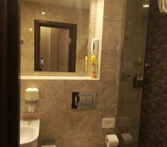 Номер с новой мебелью, очень приятный, единственное - мне не хватило тумбы для мелочей, поскольку при входе есть только шкаф и кресло-кровать, и мелкие вещи нет возможности положить на какую-то полочку или тумбу.