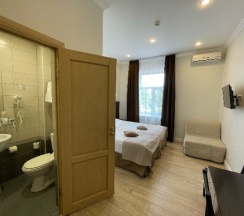 Приятное место. Внимательные сотрудники на рецепшн. Отдыхала в стандартном двухместном номере 13 -14 сентября 2025 г. Очень и очень не плохо. Прекрасное постельное белье, халаты вафельные, но в принципе это нормально, мягкие полотенца. Напор в душе порадовал. Все чисто аккуратно. В коридоре есть установка очистки питьевой воды. Окно выходило во двор. Тихо, спокойно. Сам отель в отдалении от туристического центра, но остановка автобуса рядом, транспорт ходит очень хорошо. В шаговой доступности ресторан "Чайхана", очень рекомендую именно там покушать. Рядом с парком ценник завышен. Если снова поеду в Петергоф, остановлюсь именно там.