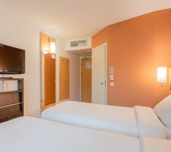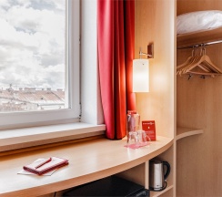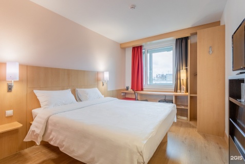 В уютном, современном номере ibis есть все: удобная ванная комната, актуальный интерьер, уютная двуспальная кровать с пуховыми одеялами, выход в Интернет, а также телевизор.
