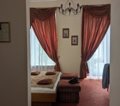 Я в восторге от отеля! Всё чисто, атмосфера уюта, средневековья, тихое красивое место. Сантехника блестит, всё исправно работает. Нормальные чашки, а не мензурки как бывает в отелях. Удобный матрас, подушки, спала как в раю. Очень вежливый персонал. Могу долго петь дифирамбы отелю, но лучше один раз попробовать, чем сто раз услышать. Спасибо отелю за великолепное времяпровождения!