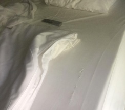 Кровать большая. Это конечно хорошо, пока не попробуешь на нее лечь. Подойти к ней сбоку невозможно, т.к. с обеих сторон вплотную стены. Остаётся только эффектно запрыгивать с разгона.