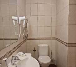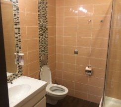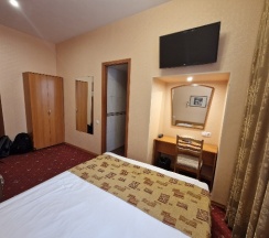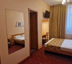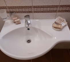 Считаю удачной находкой именно этот отель. Прожили 5 ночей. Недорого и в центре. Со своей ванной и туалетом в номере. Номер был двухместный с двумя отдельными кроватями. В номере чисто, есть фен, по два полотенца на каждого, гель для душа, шампунь , мыло, зубные щетки и зубные пасты предоставляются. Кулер , утюг с гладильной доской на этаже (мы были на втором). Внизу кофе, чай бесплатно. Есть комната для хранения вещей, мы ей воспользовались. Слышимость хорошая, но соседей не слышали, только каждое утро громко разговаривали уборщицы на этаже, от их разговоров мы просыпались.