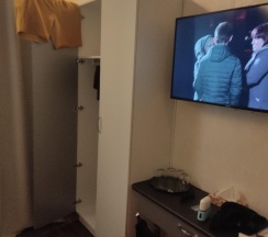 О недочетах: одеяло маленькое для такой кровати. Номер рассчитан на 3их (большая кровать и кресло-кровать). Одеяла всего 2. Таким одеялом двоим укрыться невозможно. Т. К. Мы проживали вдвоём, у каждого было своё одеяло. Далее, под шторкой валялся мужской носок. Уборка, соответственно, хромает. Табличка с просьбой убраться в номере провисела 2 дня. После звонка на ресепшн, уборка сделана была. Хотя это не уборка. Забрали мусор и положили рулон туалетной бумаги, 2 пакетика геля для душа. Потом тоже только мусор выносили. За 6 ночей полотенца не меняли, пол не мыли. Номер подразумевает кухонную зону. 5 абсолютно разных тарелок. 1 бокал для вина, 1 бокал для шампанского. 2 кружки и 2 бокала. Хотя бы парно все как-то.. А при том, номер вместимостью до 3ех человек. Посуды точно не хватит. Кухонный гарнитур очень разбитый. На ресепшене при заселении равнодушие. Про бесплатный кофе (как написано в описании) никто не говорил, по этому не знаю, есть ли это или нет. При выселении девочки были дружелюбней. Обычной улыбки, пожелания хорошего дня более, чем достаточно. Все-таки отель начинается и заканчивается с ресепшена...