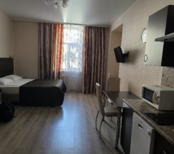 Начну с хорошего. Это идеальное месторасположение. Вот прям идеальнейшее. При этом тихо, спокойно. Снимали апартаменты-студио. Не тесно. Кровать удобная. По ТВ много каналов.