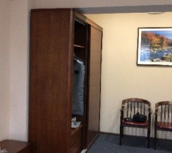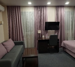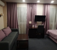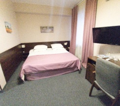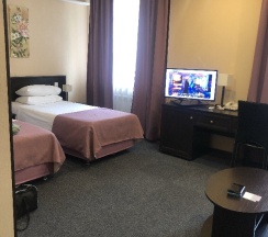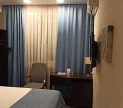 Не очень большие номера, шкаф открытый одна створка, в номерах чайников нет, шторы на окнах узкие когда полностью закрываешь с боков открываются, телевизор новый.