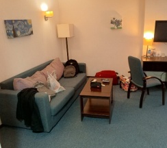 Приехали поздно, нас заселили. Принесли постельное. Очень тихо в отели. Все устроило