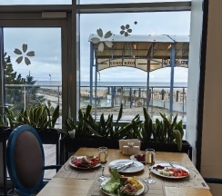 Шикарный бассейн на улице и «не баня». Очень ухоженный пляж, рядом парк отдыха, аттракционы, кафе.