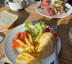 Брали ужины по системе шведский стол - выбор не огромный, но голодными не уйдете.😁 По ассортименту мне больше понравились завтраки.