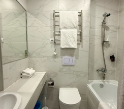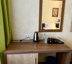 В номере есть кондиционер, холодильник, чайник, вода, чай-кофе-сахар. Полотенца для тела, для рук и для ног. Мыло жидкое. Фен.