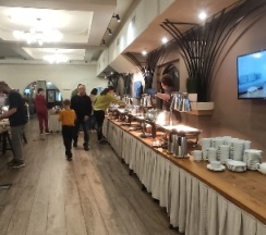 Шведский стол замечательный! Не много всего, но то, что нужно! Курица, свинина и рыба на ужин, овощи и гарниры, брокколи, фрукты , сладости, кофемашины