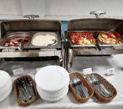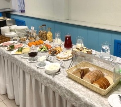 Скромные завтраки. Цены немного завышены на номера, на мой взгляд. Халаты и тапочки за отдельную плату