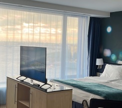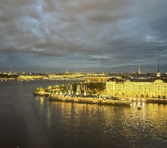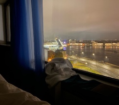Отличный отель. Хороший вид из окна , на Неву и крейсер «Аврора» , в шаговой доступности два ресторана , + есть ресторан на крыше , несколько кофеен. Метро площадь Ленина в 10-15 минутах ходьбы пешком. Отзывчивый персонал, нас заселили раньше , как только мы приехали . В номере халаты, тапочки, все необходимое в ванной комнате, а также электрический чайник, чай, кофе, вода . Есть сейф, кондиционер, фен. Завтраки шведский стол ,большой выбор блюд на любой вкус .