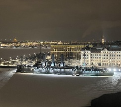 Уютный отель, вид на Аврору. Ночью очень красивое освещение Пироговской набережной, из окна можно наблюдать за разведением мостов. Вежливый персонал, в отеле хороший ресторан.