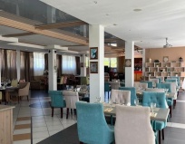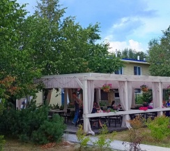 Приятное место на берегу озера, есть игровая комната для детей, вкусная еда)