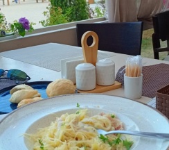 Прекрасный отель, ресторан и пляж находятся в шаговой доступности, на пляже белый песок, в ресторане средние цены при хорошем качестве блюд и обслуживании. Особенно хочется отметить девушку-администратора на ресепшене Ксению- она очень обворожительна и приветлива, при заселении разрешила припарковать автомобиль на стоянке отеля, а не общей парковке пляжа, на которой все места были заняты, очень дружелюбна, все показала и разъяснила, очень приятная девушка и ответственный специалист