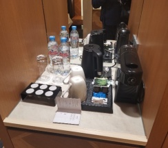 Прекрасный отель! Поздравили с Днём рождения пироженком, очень приятно! На улице жара, в номере кондиционер прекрасно справлялся! Чистота 10 из 10! Есть тапочки, косметические принадлежности вплоть до кондиционера для волос и молочка для тела! Есть кофе машина, 2 бутылки воды, чай и тп. Холодильник прекрасно морозит!