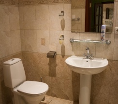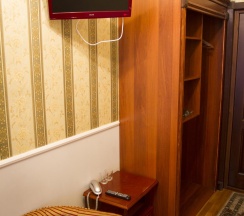 В комнате установлены 2 комфортабельные раздельные одноместные кровати с качественными матрасами, современные плоские телевизоры со спутниковыми каналами, проведены стационарные городские телефоны. Санузлы в номерах оборудованы импортной сантехникой. Там установлена ванна или душевая кабина, имеется фен и средства личной гигиены.