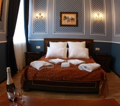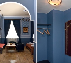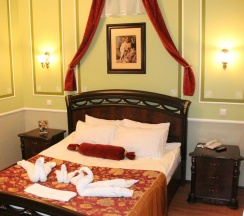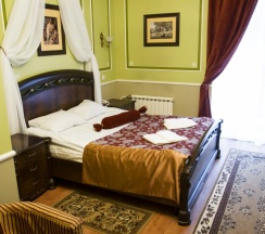 Здание отеля историческое, в стиле эклектика, построено архитектором Б.И. Гиршович в 1896 году. Для бронирования предлагаются различные варианты размещения: от бюджетных комнат до комнаты с сауной и джакузи. Комнаты оснащены необходимой мебелью, wi-fi, телевизором, собственной ванной комнатой с туалетно-косметическими принадлежностями. Комнаты «Эконом» - для бюджетного отдыха. В комнатах «Стандарт» и «Комфорт есть возможность поставить дополнительное место. Интерьер представлен в классическом стиле. Комнаты на мансардном этаже «Эконом» и «Стандарт», очень редко встречающиеся в отелях, выдержаны в стиле «Французский Прованс» со скошенной крышей и окнами в небо.