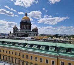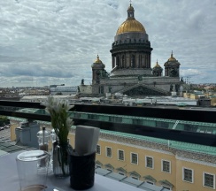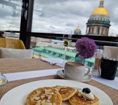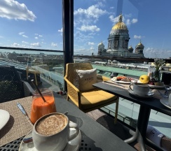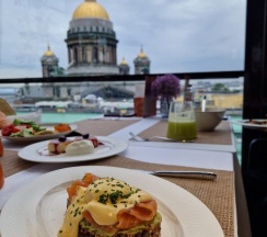 Завтраки на террасе с видом на Исаакий просто ван лав, сами завтраки отличные, и шведский стол и меню.