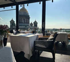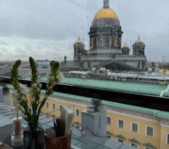 Останавливались на 3 ночи, брали два номера — всё было великолепно. Отель впечатляет с первых минут: дизайнерский интерьер, безупречная чистота, отличное расположение прямо напротив Исаакиевского собора.