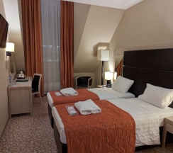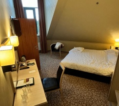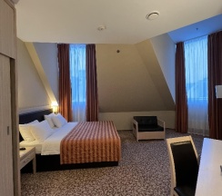 Отель отличный. Бронировали второй раз на нашу годовщину. В прошлый раз у нас был номер с видом на собор. В этот раз успели забронировать номер стандарт мансардный. Номер просторный. Пользовались кондеем, тк не открывается окно. На 1-2 ночи все отлично. В номере чайник и принадлежности, также все необходимое в ванной. Было тихо, слышимость нас устроила. Завтрак прекрасный. Все есть. Очень понравились сырники со сметаной. Муж успел сходить в бассейн до 11 утра. При выселении комплимент от отеля в честь нашей годовщины: печенье - благодарим и радуемся. Очень вкусное. Если вам нужен комфорт и доступ к парку - то этот отель лучшее решение
