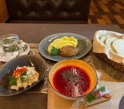 Отдыхали здесь недавно. Номер отличный. Покушали в кафе, порции большие, цены адекватные, самое главное еда нереально вкусная. Рекомендуем всем.