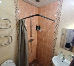 Есть все условия в номере: и просторный санузел, и мебель, и телевизор, и холодильник.