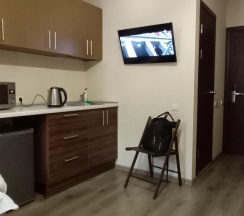 Минусы: в номере невероятно душно, кондиционер не работает, на кухне нет стульев