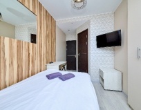 Номер был новый, в нем все чисто и он большой. Также в помещении имеется все необходимое, для комфортного проживания: холодильник, кровать, кухонных гарнитур и ванная комната, в которой все в порядке. Бронировали обычные, четырехместные апартаменты на три ночи. У меня остались положительные впечатления от проживания.