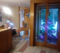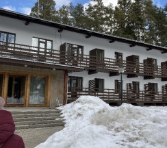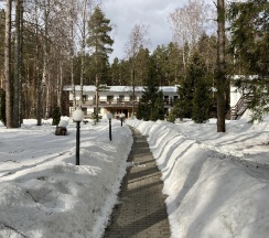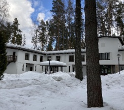 Отель расположен в лесном массиве, спрятавшийся среди вековых елей и сосен. Мы гостили в отеле в канун Нового года с 31 декабря 2024 на 1 января 2025. Но и зимой здесь хорошо и красиво. Чистый морозный воздух. Территория не большая, ухоженная. Есть своя парковка. На ресепшене приятный персонал. Отель уже немного староват, местами уже надо бы и обновить. Но, в целом достаточно чисто и скромно. В оплату отеля ничего кроме ночи не входит. Ну, например, в других отелях предоставляется утром час в бассейне или завтрак или вечером бильярд и т.д. Свои 3 звезды оправдывает, но не выше.