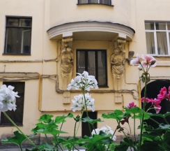 * интересный с точки зрения архитектуры фасад здания и колоритный питерский двор с парадной.