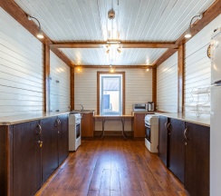 Функциональная кухня-гостиная с ТВ-зоной на первом этаже, вмещающая до 30 гостей