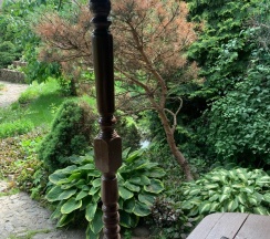На участке вокруг дома ландшафтный дизайнер (думаю) поработал ! Разнообразие деревьев, кустарников, цветов и веточек. И Не перегружено, и столько интересных сочетаний зелени- залипательно смотреть;))