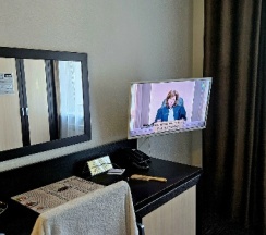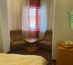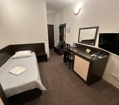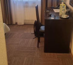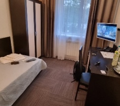 Вполне достойный отель за эту цену. У меня был одноместный номер. В реальности номер выглядит лучше чем на фото. В номере чисто, есть 0,5 л бутылка воды, одноразовые тапочки, мыло, шампунь, гель для душа (по пакетику), одноразовая зубная щетка с зубной пастой. Порадовали темные шторы, так как ночи сейчас белые, и свет спать абсолютно не мешал.Единственный минус-слышимость хорошая. Администратор вежливая. В отеле есть кафе, бар. Для удобства в номере есть меню, еду можно и оттуда заказать. Территория отеля ухоженная, чистая