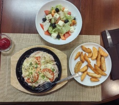 Побывал здесь из-за отмены рейса,предоставила ночлег с питанием авиакомпания. Место не прям шик, но и неплохое. Понравилось больше всего администратор отзывчивый и кухня,из минусов какие-то проблемы с водой(жёлтая и почти холодная)