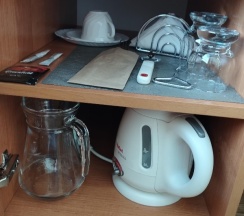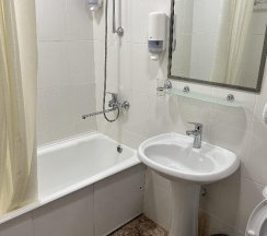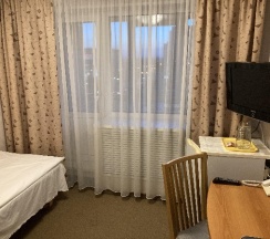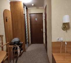 Останавливалась впервые в данной гостинице, номер просторный, чистый, были сейф, чайник, кувшин для воды, бокалы, чашки с блюдцами, два пакетика чая, сахар, для обуви ложка и салфетка, щетка для одежды в шкафу, тапочек, халата и различных наборов не было, но я привезла свои и тапочки и чай, и зубную щетку с пастой, как правило, не пользуюсь всем тем, что обычно кладут в гостиницах. Звезду снимаю за кафе, каких-то три непонятных небольших зала, ходишь и ищешь, где свободно с этой тарелкой, сталкиваясь с другими в коридоре, еда невкусная и холодная, и как будто жалко ее, какие-то непонятные бутерброды с намазкой, которые никто не берет, очень мало выложено, хотя почти вся гостиница полная, то спортсмены, то целый хор приехал, каждый день одно и то же, вечно не хватало масло сливочного, вынесут три маленьких соусника, с маслом размазанным на дне, который возможно намазать только на 1/4 хлеба 😅 капучино платный, американо входит в стоимость, но кофемашина одна, а желающих очередь! Походу и завтрак надо с собой возить 😂