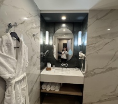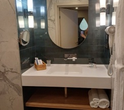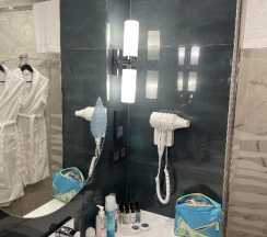 Ванная также просторная, с горячей водой в душе за время проживания проблем не возникало. Порадовало большое количество косметических штучек и наборов.