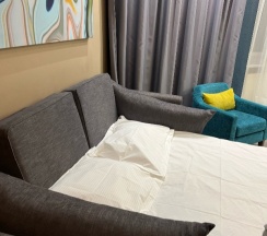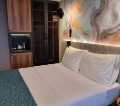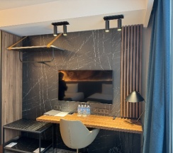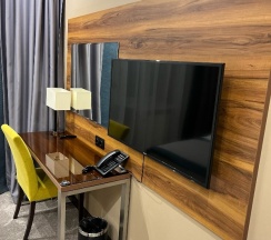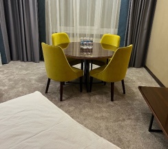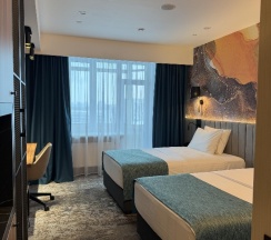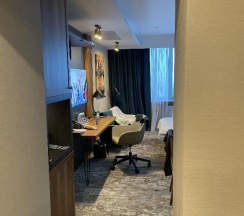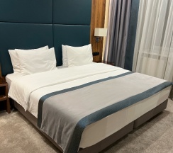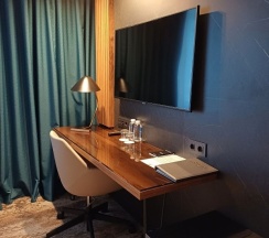 Понравился очень просторный номер, ничего не сковывало, было где расположить все свои вещи. Интерьер в номерах категории комфорт шикарный, было приятно возвращаться в номер после своего отсутствия днём. Кровать удобная, рабочий стол, стул - всё комфортно.