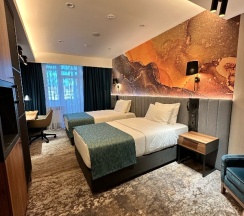 Замечательный отель! Абсолютно соответствует своим четырем звездам. Много раз останавливались там в разных номерах из обновленного фонда (те что в синих тонах) и всегда все супер. Чисто, уютно, приятный запах🙂 Также хочется отметить удобную возможность воспользоваться рестораном который находиться на третьем этаже. В котором всегда можно вкусно покушать. Завтрак также можно организовать в этом ресторане. Желаю дальнейшего процветания отелю!
