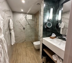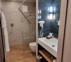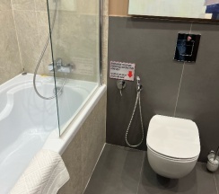 Ванна/душ с современной качественной сантехникой, полотенца для тела большие и мягкие! Каждый день докладывали средства гигиены.