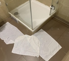 Уборка производилась, однако полотенца, насколько я поняла, не менялись. В ванной комнате протекала вода из душевой, так как не до конца закрывались дверки.